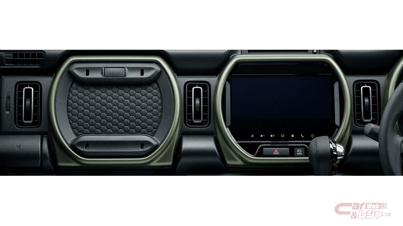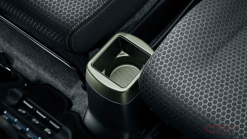 内装では、撥水加工を施したカーキステッチのファブリックシート表皮やドアトリムクロス、マットカーキのインパネカラーガーニッシュやドアトリムカラーガーニッシュを採用し、アクティブな印象を強調した室内空間とした。