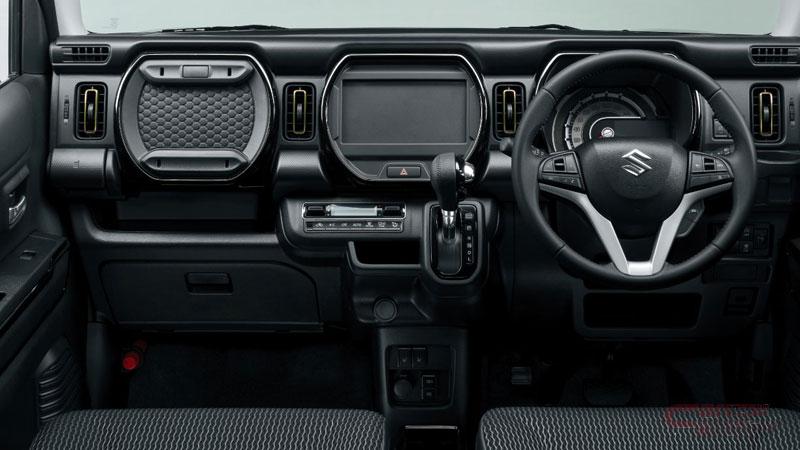 HYBRID X、HYBRID Xターボでは、外装にHUSTLERアルファベットエンブレムやメッキフォグランプガーニッシュ、メッキドアハンドルを採用したのに加え、内装にはダークグレーのレザー調&ファブリックシート表皮やブラックパールのインパネカラーガーニッシュやドアトリムカラーガーニッシュ等を採用し、質感を向上。