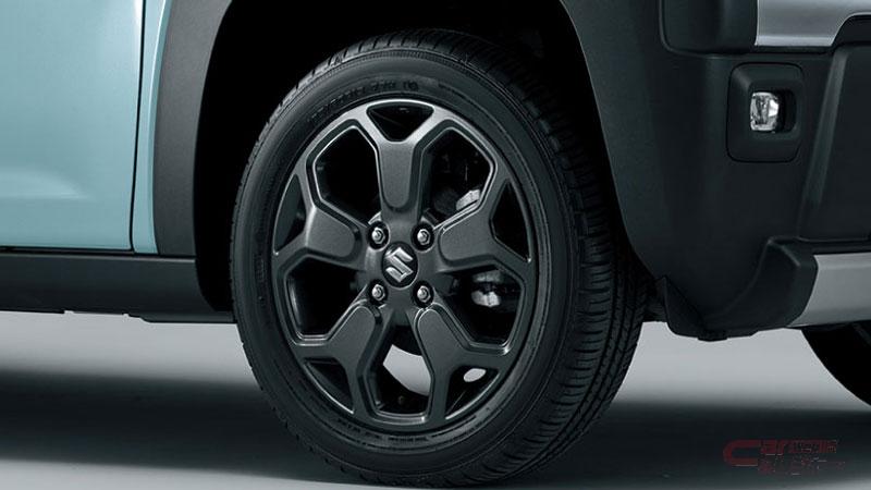 今回新たに設定された新グレード「ハスラー タフワイルド」は、外装に専用フロントグリル、メッキバンパーガーニッシュ、ブラックメッキのHUSTLERアルファベットエンブレム、ルーフレール、タフワイルドエンブレム、ブラックメタリックの15インチアルミホイールを採用することで、タフで存在感のある外観とした。