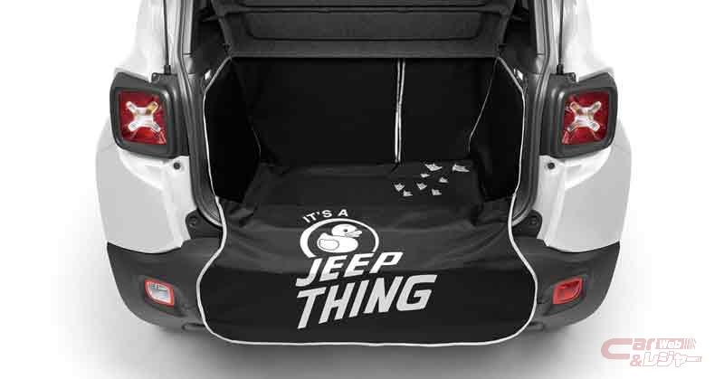 また、カナダ人オーナーがきっかけでアメリカ全土にも流行したアイテムの「Jeep Duck(ジープ ダック)」をベースとしたデカールをテールゲートに貼付し、ラゲージフルカバーおよびフロアマットにも同様のロゴを採用している他、130mmサイズの「Duckトイ」を車載している。