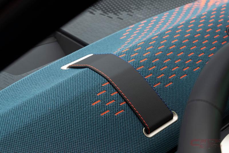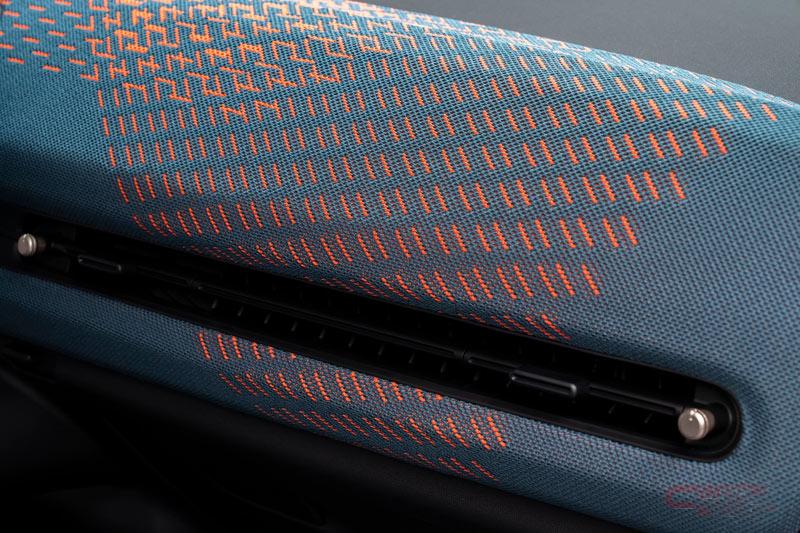 完全なデジタル化が施された内装では、ステアリング・ホイールの背後に配置されていたメーターパネルを廃止し、前方のヘッドアップ・ディスプレイおよび円形有機ELセンター・ディスプレイを採用。様々なものを削ぎ落とし、巧みにデザインされた高品質なコンポーネントによって、前方への視界が開け、広々とした室内空間を実現。ダッシュボードには布地を連想させるリサイクル・ポリエステルを使用した新しい素材を採用した。
