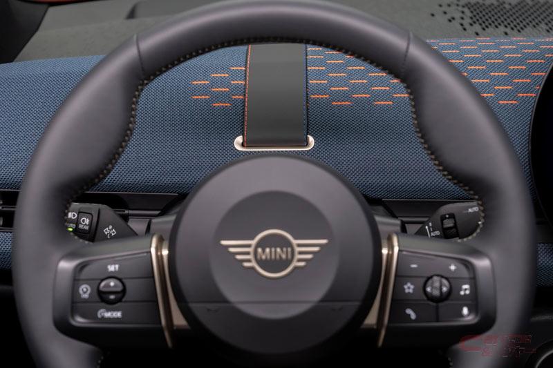 外装では、ミニのDNAを継承しつつ、新世代モデルであることを象徴するミニマルな新しいデザインを採用。全く新しくデザインされたLEDヘッドライト、特徴的な複雑な八角形の輪郭をもつフロント・グリルが洗練された外観を強調。また、重要なものだけを残したクリーンなサーフェスが特徴的であり、ボンネット・スクープ、サイド・スカットル、ロッド・アンテナ等を廃止し、フラッシュ・ドア・ハンドルおよびフィン・アンテナを採用。さらに、3種類からカスタマイズ可能なLEDシグニチャー・ライトやWelcome/Good-byeライトの採用等、新世代に相応しいMINIらしいギミックを新たに導入している。