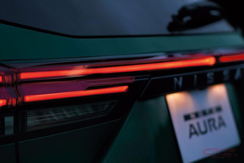 今回発売するノート オーラ「AUTECH」の外装では、AUTECHブランド車共通の表現であるドットパターンのフロントグリルや、低重心とワイドスタンスを強調し、スポーティさを演出するメタル調フィニッシュの専用パーツ、細部まで丁寧に作り込んだスポークフォルムをダーク金属調塗装で仕上げた専用アルミホイール等を採用。また、AUTECHブランド発祥の地である湘南・茅ヶ崎の海から着想を得たデザインとして、海を進むボートの後方に生じる波のパターン「航跡波」をモチーフとした模様を取り入れた専用シグネチャーLEDも装備。