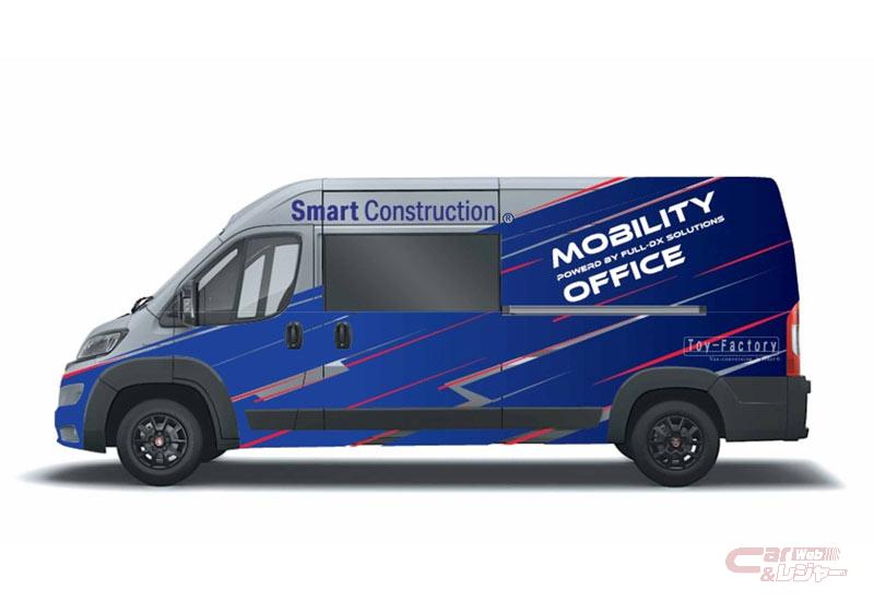 トイファクトリーは6月11日、コマツの子会社EARTHBRAINからの依頼を受け、Smart Construction®(建設現場での主要な作業をデジタル化するソリューション)の各種ソリューションや建設機械向け遠隔操作システム等のデジタルを駆使したモビリティオフィスを実現する車両を製作したと発表した。