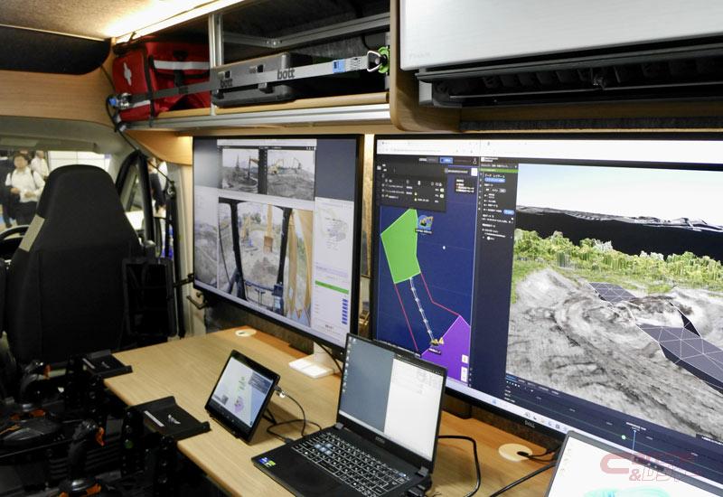 同車両では、建設現場や災害現場等にある建設機械を離れた場所から遠隔操作したり、現場の情報を集約したりすることで迅速な工事に貢献するモビリティオフィスとしての活用を予定している。