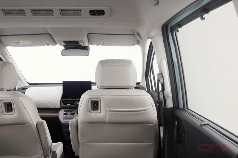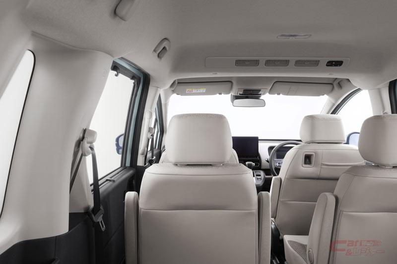 先代モデルでも好評の、フリードならではの取り回しのしやすいボディーサイズを維持するため、2モーターハイブリッドシステム「e:HEV」搭載による全長の拡大を45mmに留めた他、1列目のシート形状を工夫し、ウォークスルーや2列目シートへのアクセス性を向上する等、使い勝手を向上。