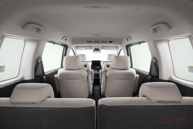 インホイールメーターの採用等により、水平基調でノイズレスなダッシュボードを採用し、すっきりとした前方視界を実現。またベルトラインを水平基調とするとともに、前方から側面を連続性のある視界とし、さらに3列目席はリアクォーターウインドウを四角基調に変更し先代モデルよりも窓の面積を拡大する等、全席で明るく開放感を感じることのできる室内空間とした。