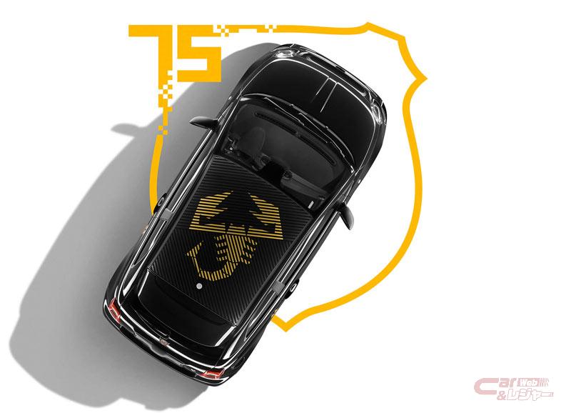 695 75° アニヴェルサリーオは、本年5月末に695の日本向け生産が終了になったことにより、695シリーズとして最後のモデルとなる限定車。アバルト・ブランド設立から75年の歴史に敬意を表し、同モデルの排気量にちなんで、世界1368台限定での発売となり、その内350台を国内販売する。