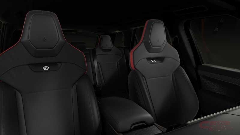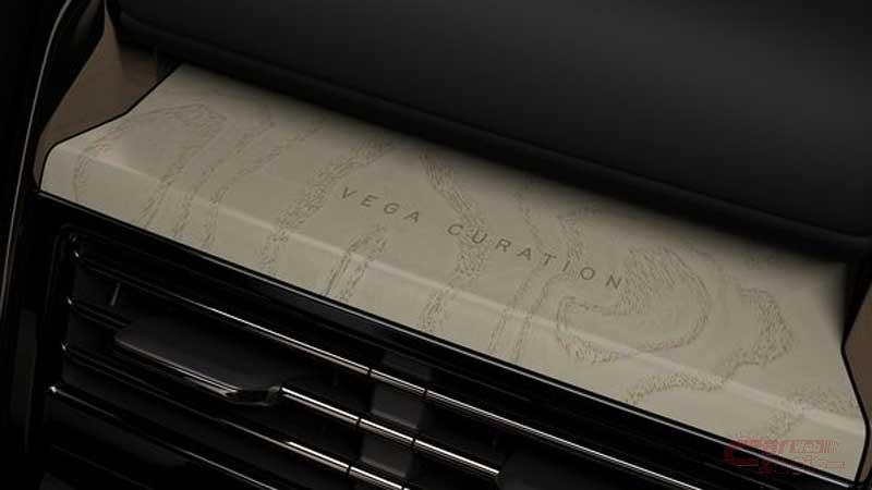 内装では、グランドブラックのグロスフィニッシャーと、ヘッドレスト、視覚と光を表したシンボルをコンソールに施し、テイアの見守る目、月のクレーター、星座等、様々な形でテーマに結びつけている。シートには、ドラマチックなエボニーとピメントウィンザーレザーを採用し、KvadratTMスチールカットバックボードを装備している他、センターコンソールにはサテンフォージドカーボンファイバーフィニッシャーを装備した。