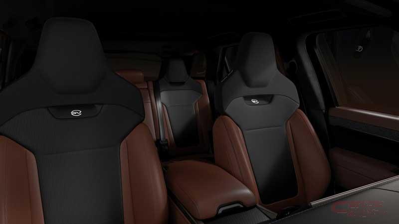 内装では、鮮やかな外装と調和するエボニー&ローズウッドの3Dニットシートに、サテンツイルカーボンファイバーのシートバックボードとシートカラーベゼルを採用した。