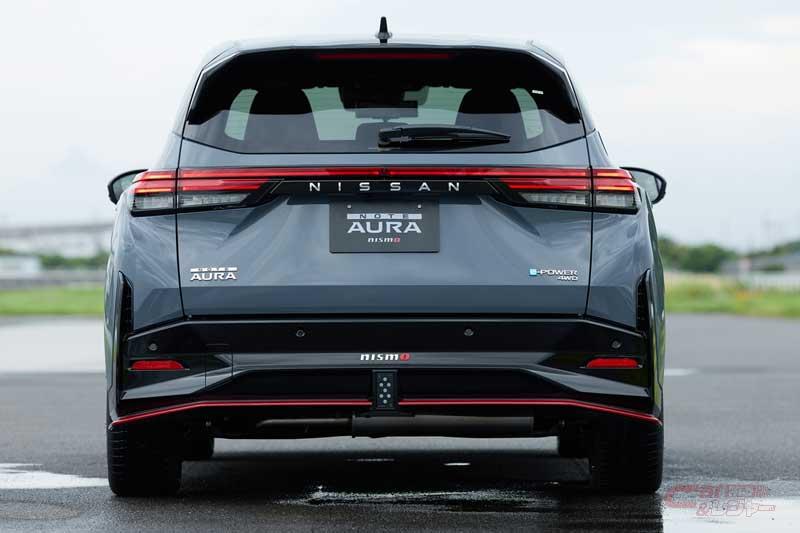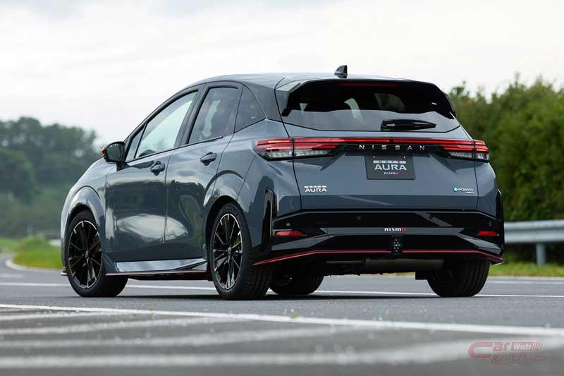 今回のマイナーチェンジでは、オーラ NISMOでは初となる4WDグレード「NISMO tuned e-POWER 4WD」を新設定した他、デジタルなモード感とレーシングテクノロジーを融合し、モダンな機能美を表現したデザインへと進化。さらに、BOSEパーソナルプラスサウンドシステムをオプション設定したのに加え、RECAROシートにパワーリクライニング機能を追加するなど、商品力の強化が図られた。