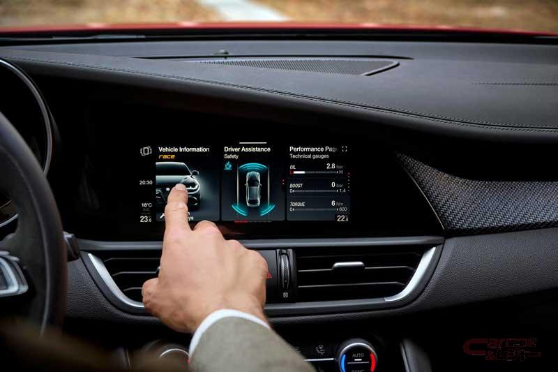 内装では、新たに3D仕上げのカーボンファオバーをダッシュボード、シフトパネル、ドアパネルに採用。また、レーシングマシンから着想を得たスパルコ製カーボンバケットシートやアルミニウム製スポーツペダル、優れたレスポンスを発揮するアルミニウム製パドルシフトを装備している他、直感的な操作が可能8.8インチタッチディスプレイ、「Evolved」「Relax」「Heritage」「Race」の4パターンのレイアウトの切り替えが可能な12.3インチ大型デジタルクラスターメーター、Haman/Kardonプレミアムオーディオシステム等を採用している。