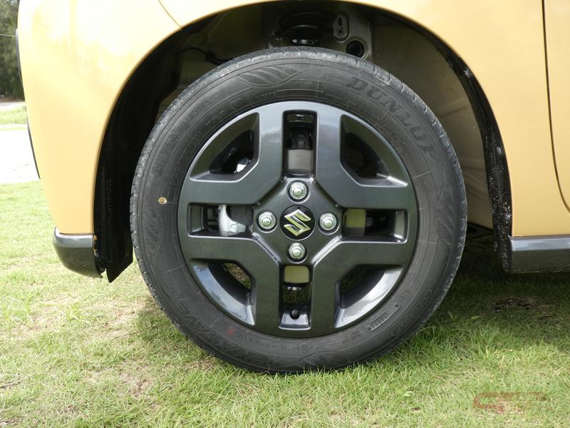 他にも、オレンジのアクセントが効いたガンメタリックの2トーン仕様のエンブレム、ブロックが付いたような立体的な造形のルーフレールを装備し、機能的な質感や力強さを表現した。足元には、プラスのネジをモチーフとした、専用のガンメタリック塗装の14インチアルミホイールを採用。