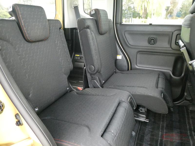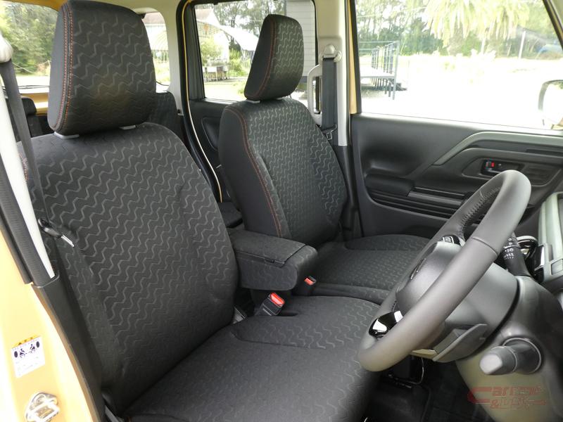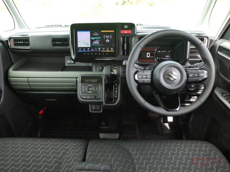 内装では、シート表皮に山の稜線や歯車、タイヤパターンなどをイメージした意匠を採用。エンボスの艶感と凹凸感の絶妙なバランスで遊びゴコロと機能性を表現。また、ビッグオープントレーガーニッシュ、インパネボックス等にカーキグリーンを採用し、ツールボックスのような丈夫な印象を際立たせている他、メーターは丸モチーフに多角形ディテールを組み合わせたプロテクト感のあるデザインを採用し、オレンジのアクセントが個性的な印象を演出。