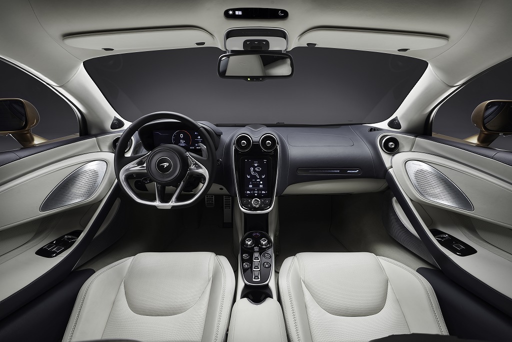 二つ目は、GTならではの美しいスタイリングだ。「全てのマクラーレン車がそうであるように、GTでも気流が最適かつエレガントに車体表面を流れるよう設計されている」とは、GTのデザインを手がけたゴラン・オズボルト・チーフデザイナー。「正面から見ると、ノーズ位置の高さ、際立ったグランドクリアランスによって、日々の実用的ドライブにも非常に有効だというのが分かるでしょう」とオズボルト氏。フロントは、特徴的なハンマーヘッドラインによって新型GTの奥行きと魅力を際立たせ、リアはボディと一体化した固定式リア・ウイング、リアフェンダーはサイドラジエーターを覆うように造形することで、力強さと精巧さを表現している。