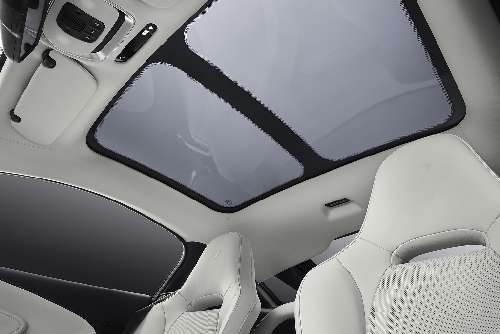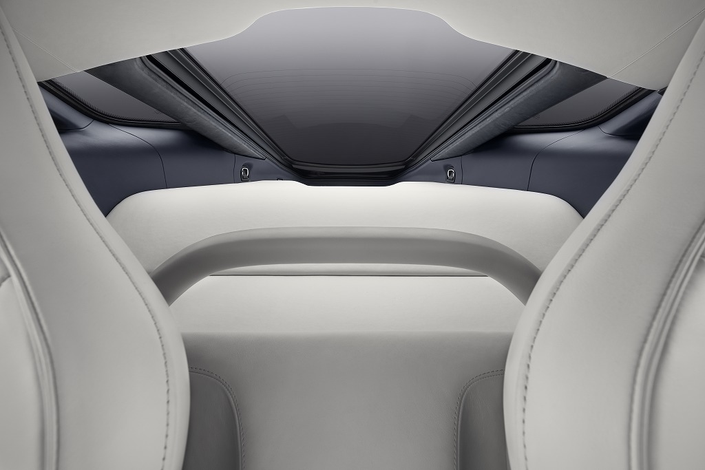 一つ目は、超軽量構造、そして革新的な素材の積極的な採用だ。カーボンモノコックボディからアルミ加工を施したスイッチの1つ1つまで、徹底した軽量化を実現する一方で、上質なレザーやカシミヤ、さらには抜群の耐久性を誇るスーパーファブリックといった最高級素材を積極採用。高機能かつ上質な室内空間を実現した。