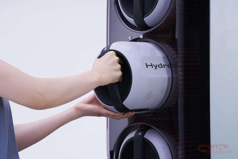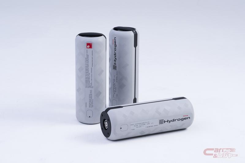 日本初公開となる「ポータブル水素カートリッジ」は、トヨタが燃料電池自動車(FCEV)開発で培った技術を活用し、これまで大型で持ち運びが困難だった水素タンクを、人の手で運ぶことができるサイズに小型・軽量化することで、水素を身近で安全なエネルギーとして様々な生活シーンで使用できる設計となっている。
