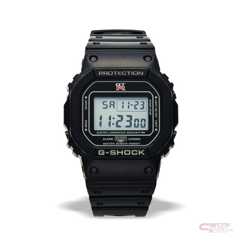 - NISSAN GT-R G-SHOCK:GT-RとG-SHOCKのコラボレーションモデル第6弾。GT-Rのボディカラーであるミレニアムジェイドをイメージしたカラーリングに、GT-Rロゴが際立つデザイン。ベースモデルには初代モデルのDNAを受け継ぐ日本製のG-SHOCK DW₋5600を採用し、ボタンとバックルはメタルブラック、裏蓋にはGT-Rのロゴ刻印が施されている。