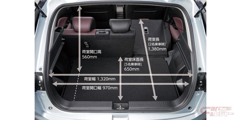 パッケージングは、全長3,995mm×全幅1,765mm×全高1,550mmのボディーサイズに、最小回転半径4.8mを実現。街中の狭い路地や駐車場等でも扱いやすいサイズとしながら、後席の広い足元空間を確保。さらに、高目付のダッシュインナーサイレンサーや遮音壁等を採用することで車室内の静粛性を高め快適な室内空間を実現。他にも、スマートフォン連携メモリーナビゲーションや電動パーキングブレーキ、ワイヤレス充電器等の快適機能を標準装備した。
