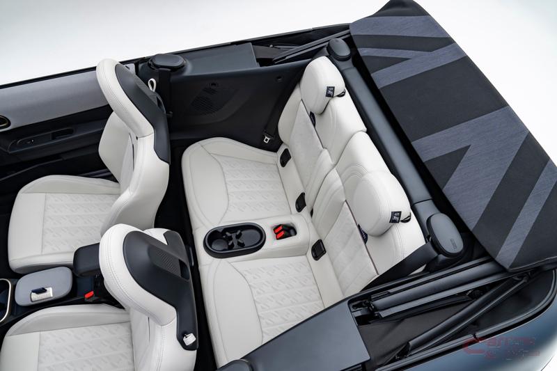 アイコニックな最新型の電動ソフト・トップを装備し、全開までの時間はわずか約20秒を実現。走行中に突然の天候の変化が生じた際等にも時速約30km/hまで車両を停止させることなく開閉することが可能な他、ルーフを40cmだけ開くサンルーフ・モードも装備。さらに、MINIを象徴するユニオン・ジャックのデザインを生地に織り込んだMINI Yoursソフト・トップをオプション設定した。