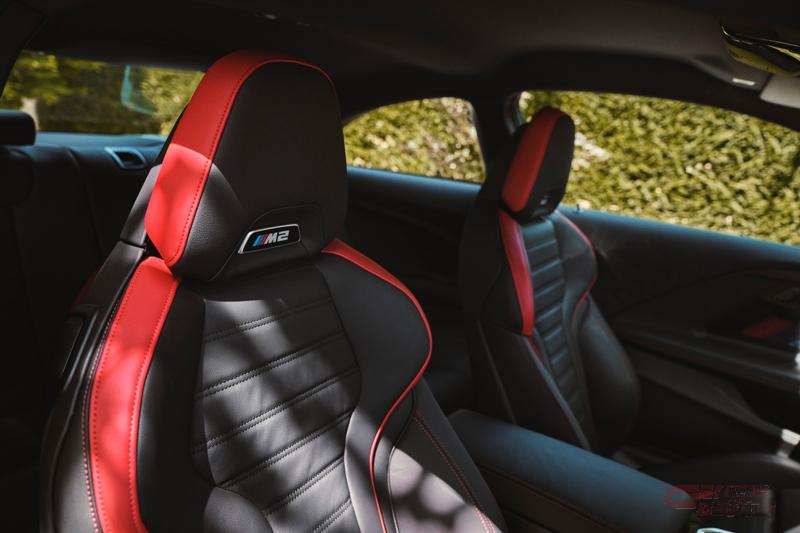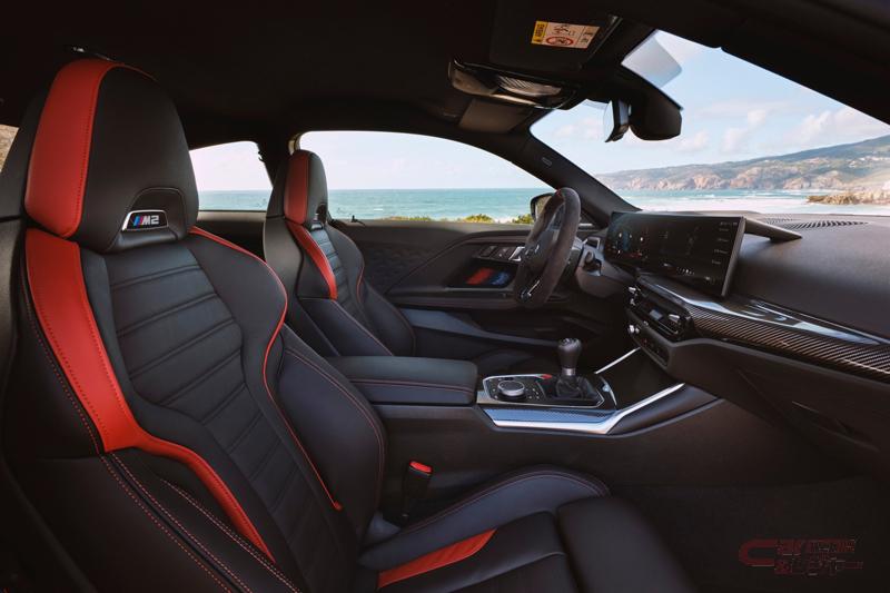 上級モデルのM3、M4と共通のコンポーネントを多く採用しており、iドライブ・コントローラー、タッチ操作が可能な視認性に優れたカーブド・ディスプレイ、Mスポーツ・シート、フロント・シートに内蔵されたイルミネーション付きのM2ロゴ等を装備している他、コンパクトながら大人2名乗車が可能なゆとりのある後席を確保。また、サーキット走行に適したMカーボン・バケット・シートをオプション設定したのに加え、多点式シートベルトにも対応し、横方向のGを強力にサポートするMカーボン・バケット・シートは前席2脚で約10kgの軽量化も実現する。