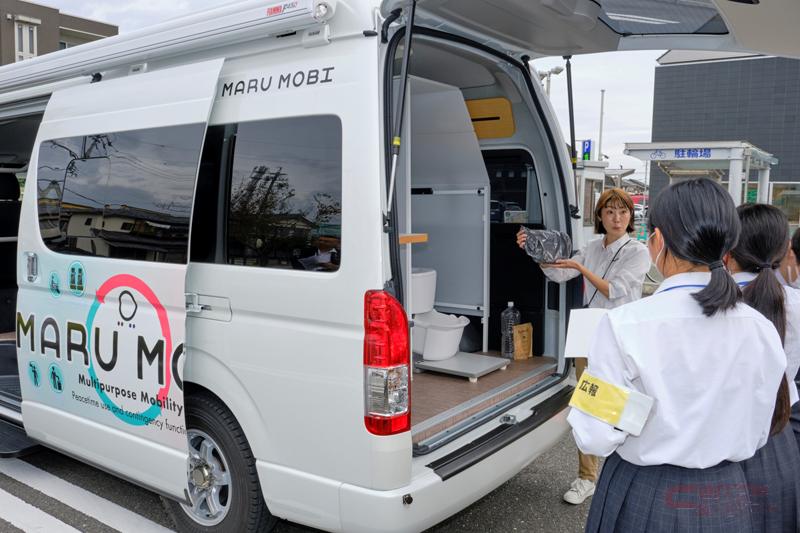 トヨタ「ハイエース」をベースに、取り外し可能な脱着式シートや、トイファクトリーが特許を取得した特殊構造を車内に設置し、レイアウトを用途に応じて組み替えられるモードチェンジが容易で、汎用性が高いのが特長。2024年1月には、同社が日本総代理店を務めるスイス製のウォーターレストイレ「clesana(クレサナ)」をマルモビ車内に搭載したトイレカーを緊急開発し、被災地に派遣したことで話題となった。