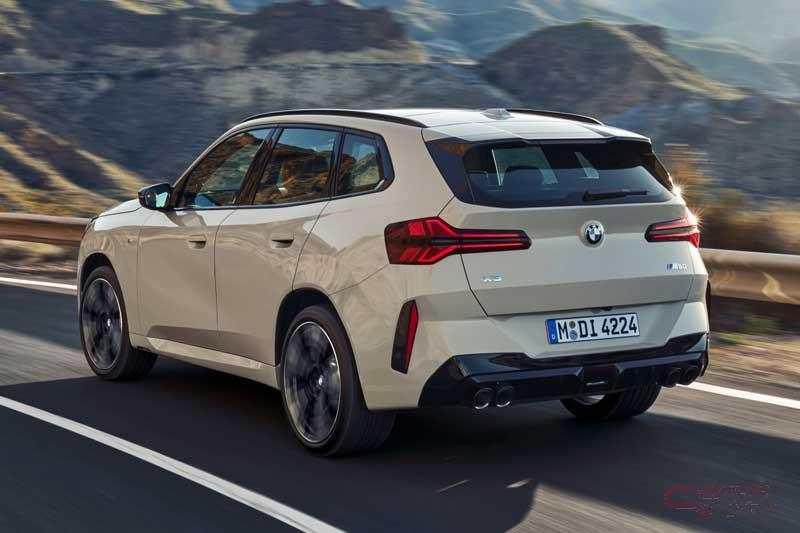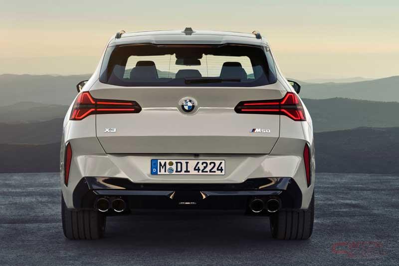 リヤ・デザインにおいては、プレスラインを最小限にし、ナンバープレートの取り付け位置をバンパーに収め、テールライトのデザインを立体的なT型にすることで、クリーンかつモダンな印象とした。X3 M50 xDriveには、4本出しのエグゾースト・パイプを採用することで、アグレッシブな印象が表現されている。