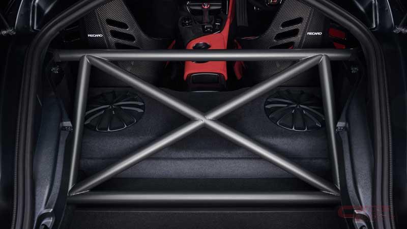 - ダックテールタイプのカーボンリヤスポイラーを採用。フロントにはホイールアーチフラップを追加し、フロントタイヤスパッツの高さを拡大することで前後の空力バランス、ダウンフォースを最適化し接地性とハンドリング性能を向上した。