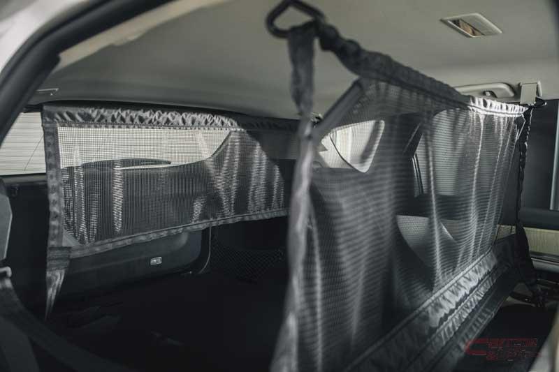 - 急ブレーキ・事故等の際、2列目や前席への荷物の侵入を防止するパーティションネットを設定