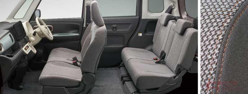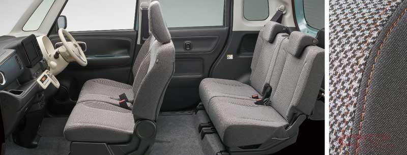 足元では、2トーンカラーのフルホイールキャップにガンメタリック&ソフトベージュを新たに採用し、引き締まった印象を強調しつつ、淡いボディーカラーともなじみがよい、大人可愛いコーディネートを採用した。