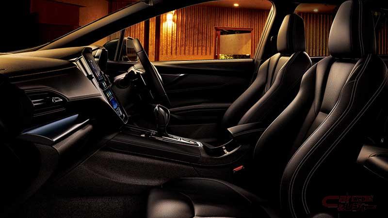 外装では、ブラック塗装の18インチアルミホイールやドアミラー、ラスターブラック塗装を施したLAYBACK/シンメトリカルAWDリヤオーナメントなどを採用することで上質さを際立たせ、内装では、本革シートやブラックルーフ&ピラートリム、ドアアームレストなどをブラックに統一し、高級感のある室内空間とした。