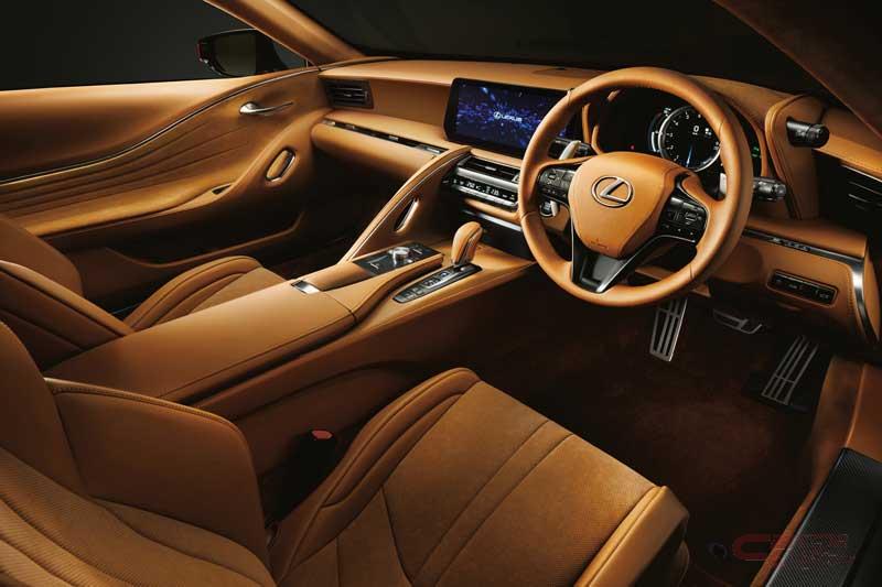 また内装では、乗員の心地良さをより追求するために、LC500h/LC500のインストルメントパネルの助手席側表皮材にアルカンターラ®を採用し、運転席から助手席にかけて繋がる造形美が際立った、より上質な室内空間とした。