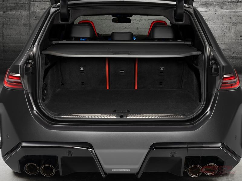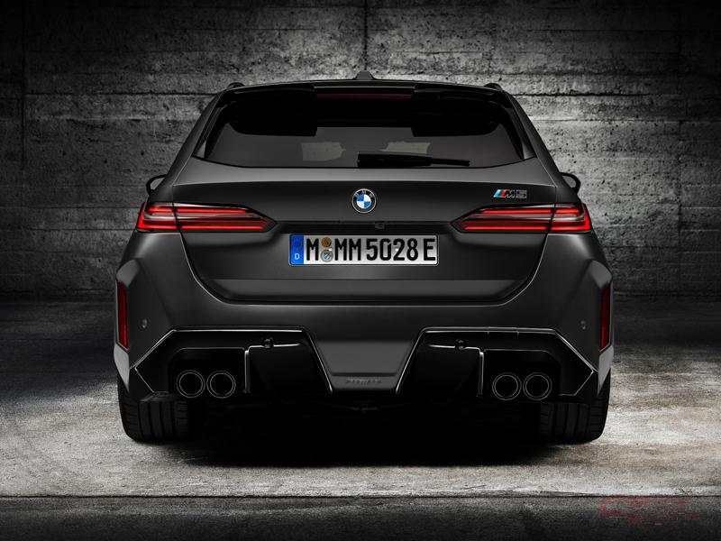 リアでは、Mリア・スポイラー、専用デザインのディヒューザーが施されたM専用リア・バンパー、Mスポーツ・エギゾースト・システム、5シリーズ ツーリングより48mmワイドなリア・フェンダーと相まって、精悍な佇まいを表現した。