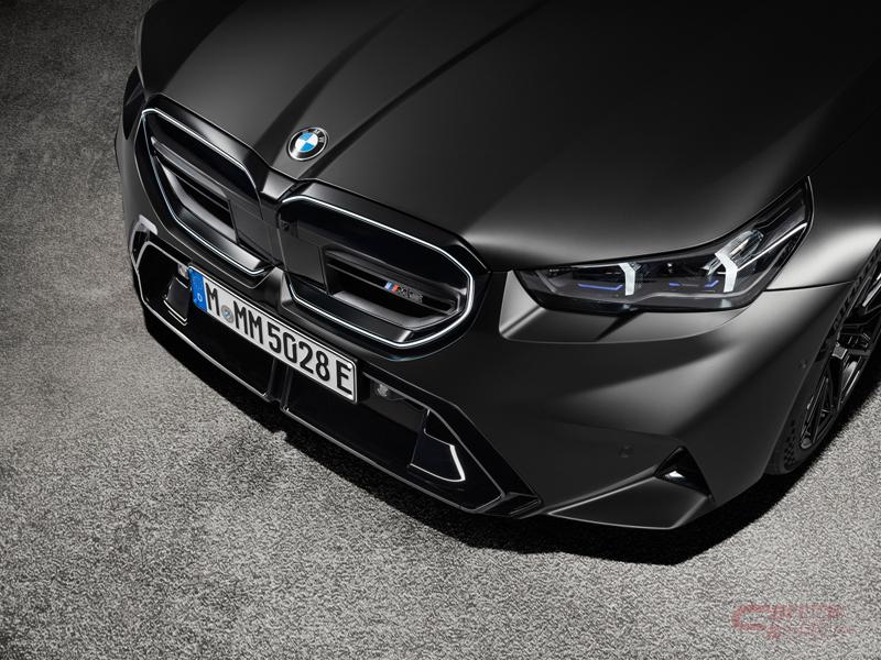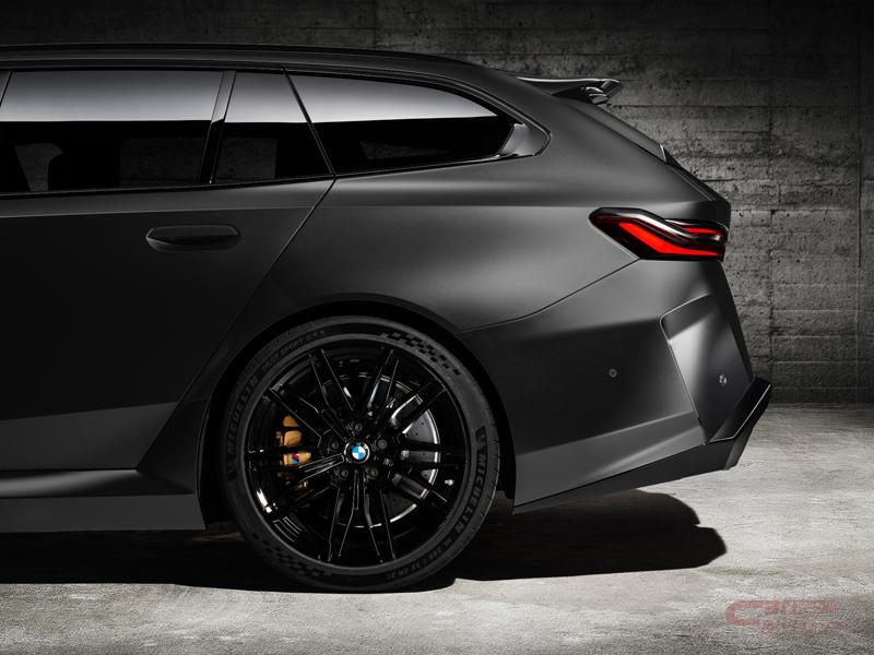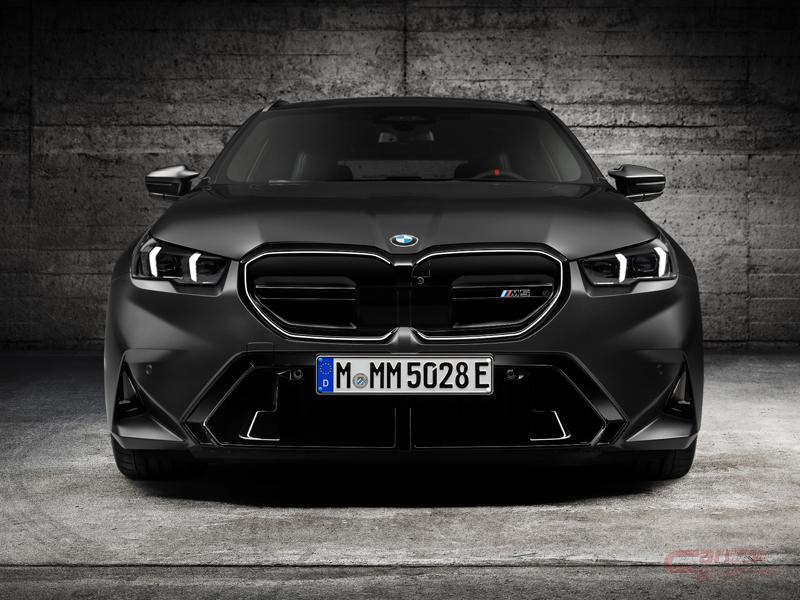 外装では、M専用エアロ・バンパーやガーニッシュ、夜間走行時にBMWブランドの象徴である造形を印象的にライトアップするBMWアイコニック・グローを備えたM専用ブラック・キドニー・グリル、5シリーズ ツーリングより75mmワイドなフロント・フェンダーが力強い外観を強調。