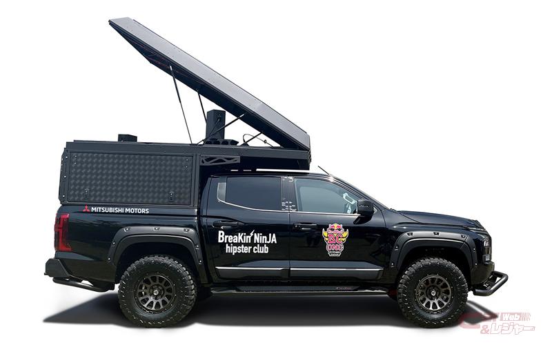 同社ブースでは、“カッコよく遊び尽くせ!”をテーマに、昨年2月に発売した1トンピックアップトラック「トライトン」を中心に合計8台を出品。メイン展示車となるトライトンのカスタムカーでは、同車のブランドアンバサダーであるタレントのヒロミさんがカスタマイズを手掛けた車両や、昨年11月に開催した「トライトンカスタムコンテスト」の最優秀賞車、レッドブル・ジャパン株式会社が主催するダンスイベント等で音響を提供するDJブース搭載イベントカーを出展。