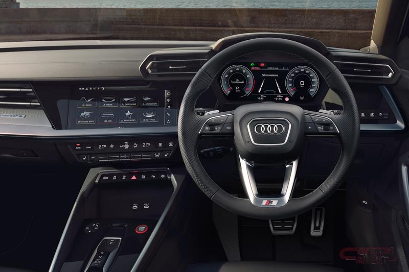 パワートレーンでは、最高出力333PS/最大トルク420Nmを発揮する2.0 TFSI エンジンを搭載し、7速Sトロニックとquattro を組み合わせた他、RS 3に採用されていたトルクスプリッターをS3にも装着しており、リヤアクスル左右のトルク配分を自在にコントロールすることで、アンダーステアを防いで俊敏なコーナリングを実現。サスペンションは、標準モデルに比べて10mm低く設定しているのに加え、ダンピングコントロールサスペンションのオプション選択が可能。出力の向上、トルクスプリッターの採用などにより、パフォーマンスとハンドリング性能を向上した。
