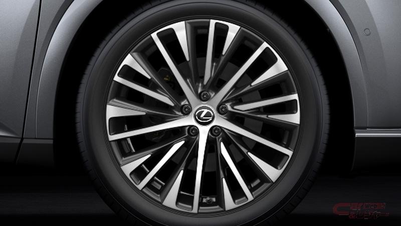 外装では、RX450h+/RX350h/RX350の“version L”に従来の21インチタイヤ&ホイール(ダークグレーメタリック塗装/ダークプレミアムメタリック塗装)に加え、21インチタイヤ&ホイール(ダークグレーメタリック塗装+切削光輝)を新たにメーカーオプションとして設定。