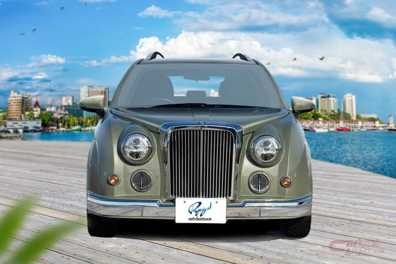 大型で縦型のラジエターグリルに、丸型ヘッドランプを配置し、メッキ加工を施した前後のバンパー部に厚みを持たせる事で存在感を強調。 ラジエターグリル上面に貼付するエンブレムの素材には、少量生産ならではの拘りとして伝統工芸のひとつである「七宝焼き」を採用している。