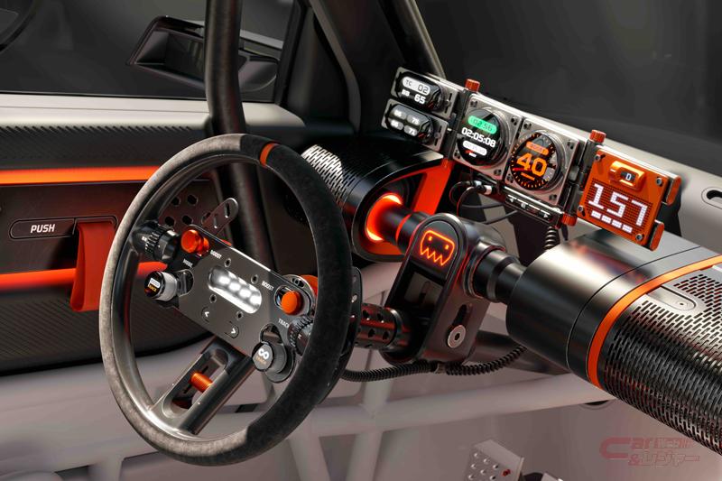車内コックピットは、バケットシート、ロールケージ、専用のインストルメントクラスターという必要最小限のものだけを備えたレイアウトを採用し、没入感あるドライブ体験を提供。すべての要素が完全に調整可能となっており、「作って、遊んで、壊して、を繰り返す」というモットーに忠実に、「ガレージで組み立てられたマシン」というユーザー中心の精神を反映している。
