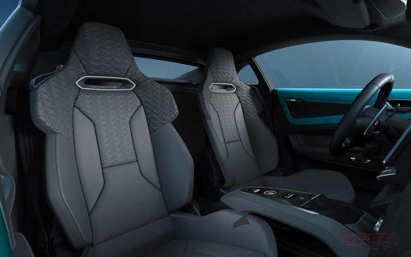 シートは、グレー又はブラックのSABELT製レザーシートを標準装備し、オプションで5色のカラーバリエーションがあるSABELT製軽量モノコックバケットシートの選択が可能(その場合にはマイクロファイバーインテリアとなる)。