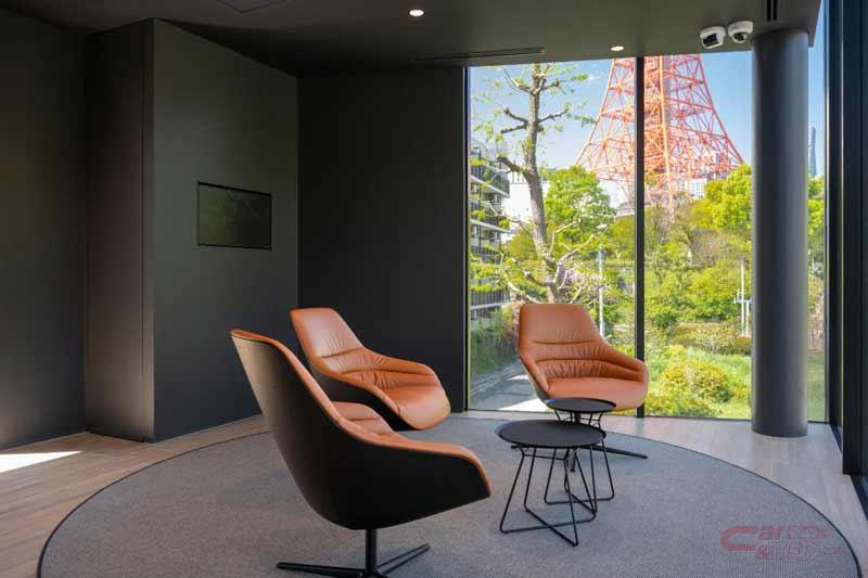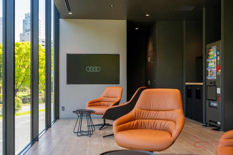 同施設は、ドイツ・ニュルンベルクに2021年12月からサービス提供をしているAudi charging hub (ACH)のスタイルを踏襲した2階建てで、1階に2台同時に充電可能な最大出力150kWの蓄電池型急速充電器1基を設置し、2階には50m2のラウンジを併設。ラウンジは、アウディモデルオーナーが利用可能で、充電開始をすると使用の携帯端末に二次元コードが配信され、その二次元コードを使って2Fのラウンジにアクセスすることが可能。