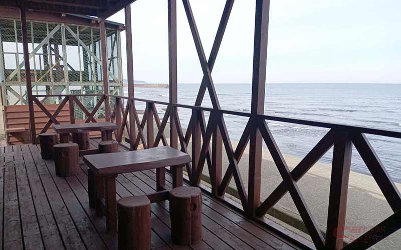 眼前には海が広がり、日本海に沈む綺麗な夕日が堪能出来る他、併設するウッドデッキでは料理やお酒などの飲食が可能で、 夜は星空のもと指定場所での焚き火も楽しむことができる。