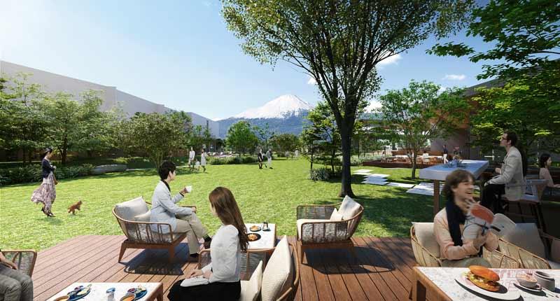 また施設内には、富士山の麓から連なる緑豊かな森と開放的な広場空間、この地で育まれた地下水が流れるせせらぎを整備し、居心地の良い環境を創出する。