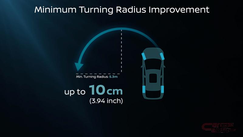 他にも、ラックアシストタイプの電動パワーステアリングシステムの改良により、ホイールサイズは19インチを採用しつつ、最小回転半径を0.1メートル(3.94インチ)改善し、5.3メートルを実現している。