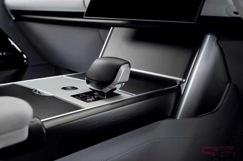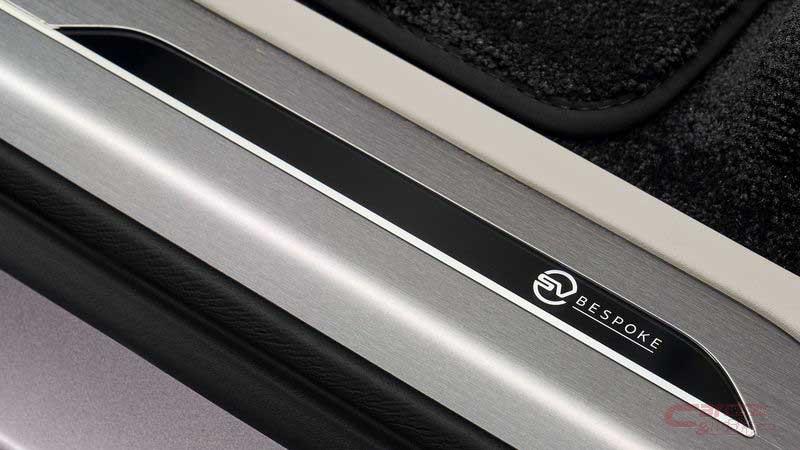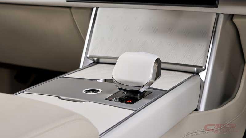 光が当たるとゴールドの輝きを放つスモークがかったブルーグレイのビスポーク ブルーグレイサテンを採用し、夕暮れ時の柔らかで温かみのある空の色を表現。内装では、ノンレザーのUltrafabric™素材を使用し、フロントシートにライトクラウド、リアシートにシンダーグレイのデュオトーンを採用。ムーンライトクロームとブラックセラミックコントロールが、ダークな内装テーマを際立たせている。