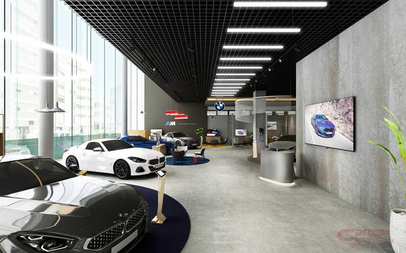 店舗では、高さ9メートルの前面ガラス張りの開放的なショールームを設置している他、ドイツのロマンチック街道の石畳をイメージしたエントランス、ゆったりとしたスペースのセールスラウンジを備えることで、BMWの世界観を表現した。