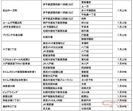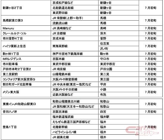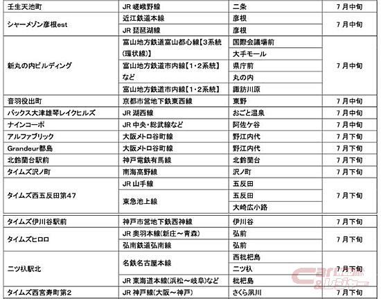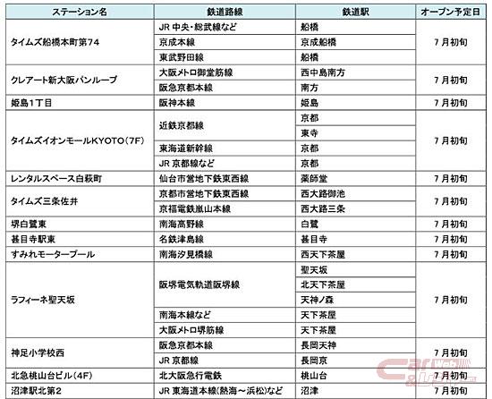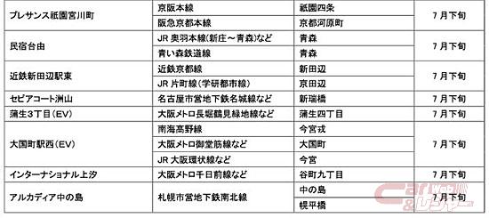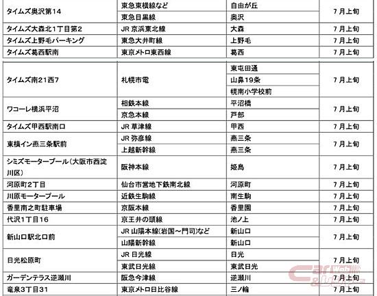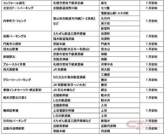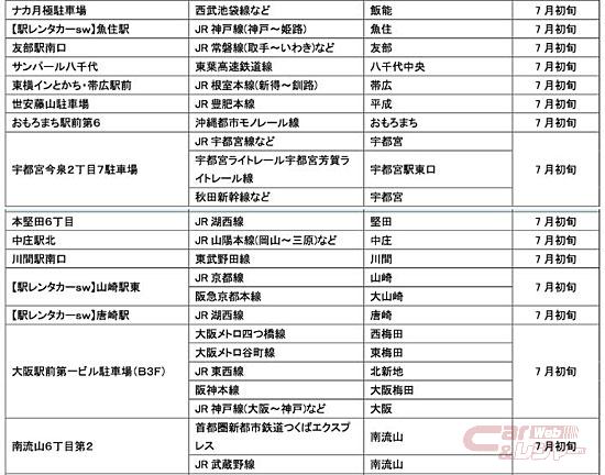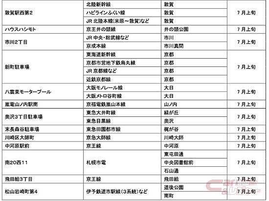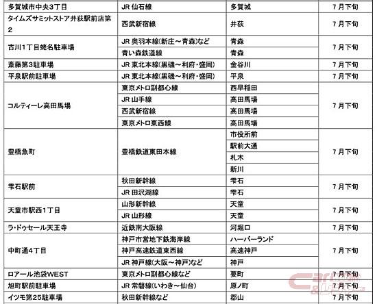 7月にオープンおよびオープン予定の「パーク&ライド」に適した駐車場は14件、「レール&カーシェア」に適したステーションは169件。