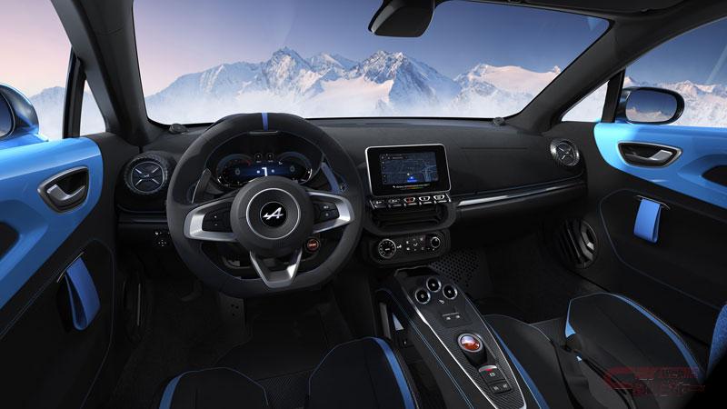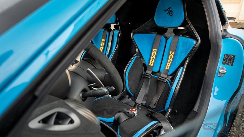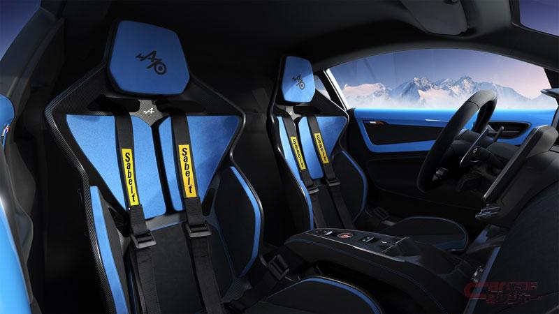 内装は、車体色と共通カラーとなり(ブラン グラシエのみグレーインテリア)、専用2トーンデザインのSABELT製軽量フルカーボンモノコックバケットシートを装備した。