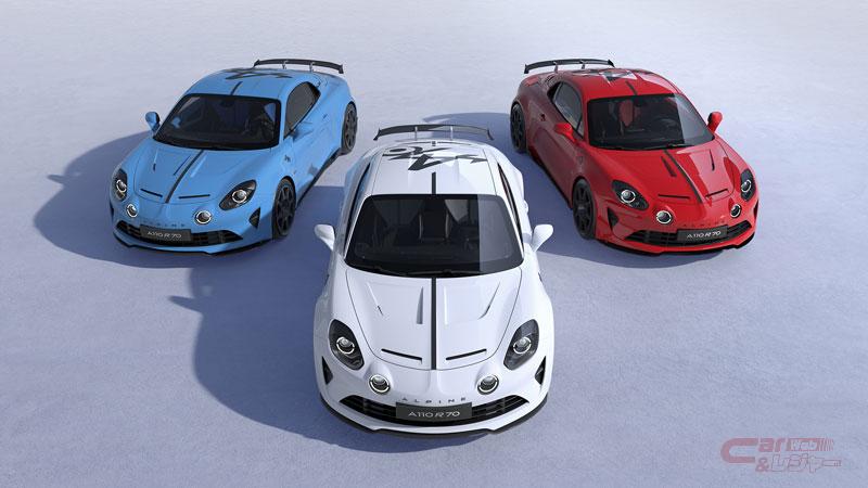 アルピーヌ・ジャポンは7月10日、「A110 R 70」に限定車「 A110 R 70 BLEU BLANC ROUGE」を設定し、同日から27日まで全国のアルピーヌ正規販売店を通じて抽選販売の申込受付を開始した。