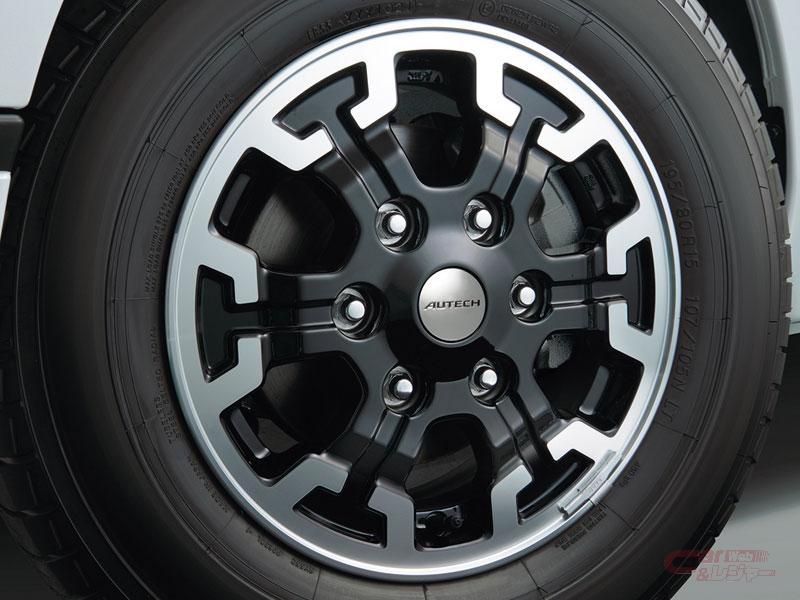 従来のAUTECHシリーズとは異なるカスタムカーとして発売するもので、スタイリッシュな外装と実用性の高い内装を備えたモデル。外装では、専用装備として15インチアルミホイールをはじめ、存在感を高めるルーフスポイラー(オプション)などを採用し、スタイリッシュな外観を演出。内装では、アクティブな用途にも便利な専用の防水シートを採用した。
